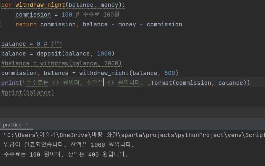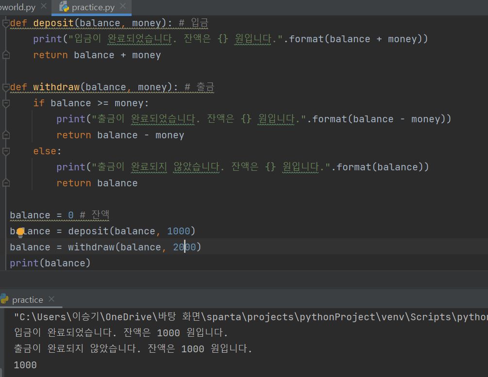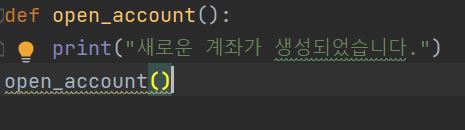 ex) 실행하면 "새로운 계좌가 생성되었습니다"라는 문자를 출력하는 open_account 함수 정의