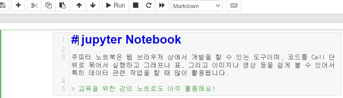 Edit - Insert image를 통하여 이미지를 삽입할 수 있음 (이미지 삽입은 Code셀이 아닌 Markdown셀에서 가능)