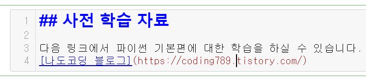 ※ 구글에 '마크다운 사용법'을 검색하면 자세한 마크다운 사용법에 대해 설명되어있는 사이트들이 많이 있음.