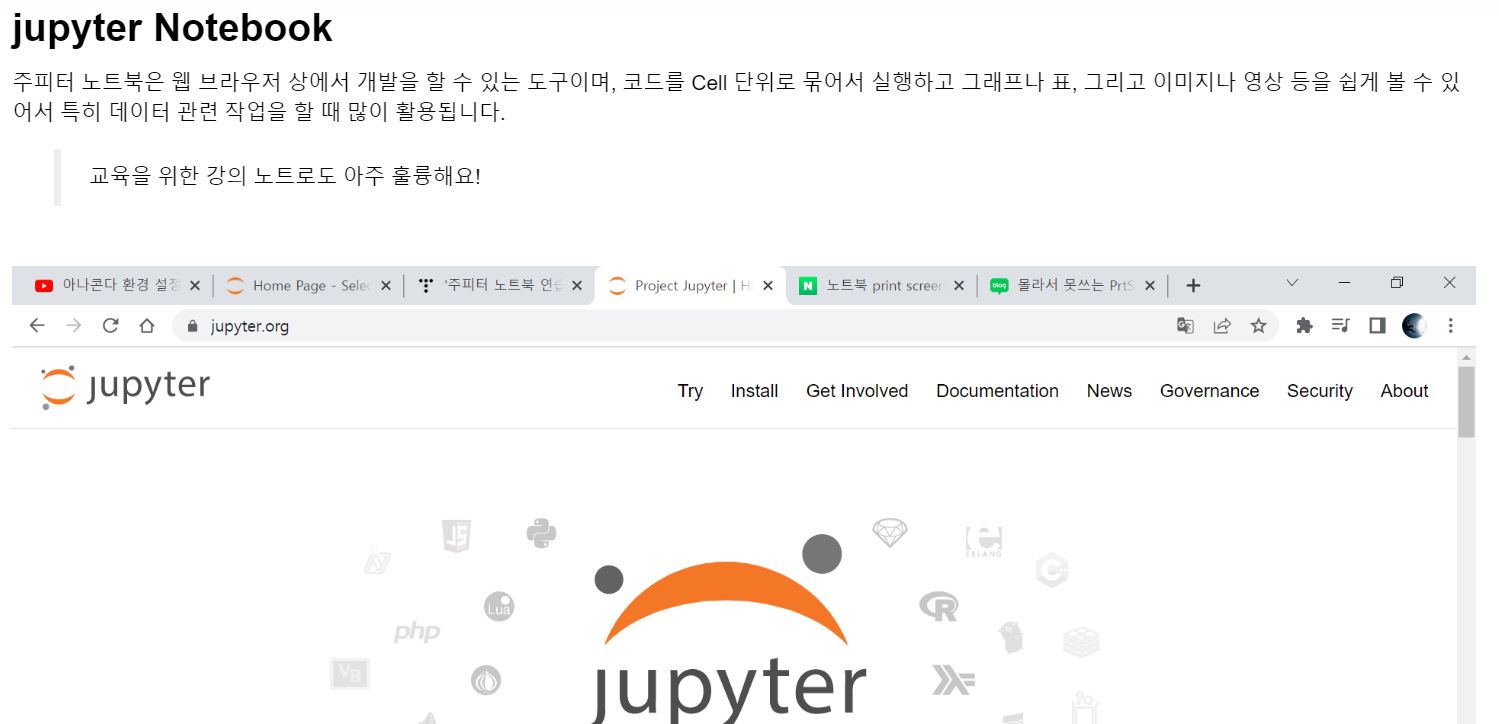 ※ 화면 캡쳐 후 바로 Markdown 셀에 붙여넣기하는 것 이외에도 그림판 파일에 캡처를 붙여넣기 한 후