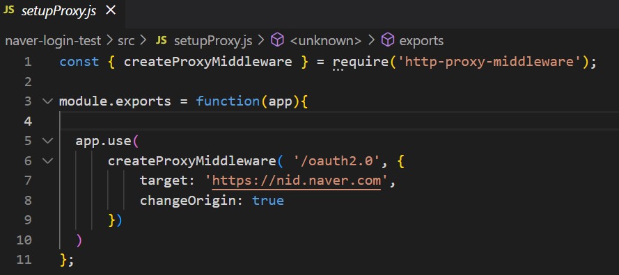 네이버 고객센터에서는 이 둘의 포트번호를 서로 같은 상태로 개발을 진행하라 권유하였지만 나는 http-proxy-middleware를 사용하여 proxy를 통한 우회후 api 요청으로 이를 해결하였다.