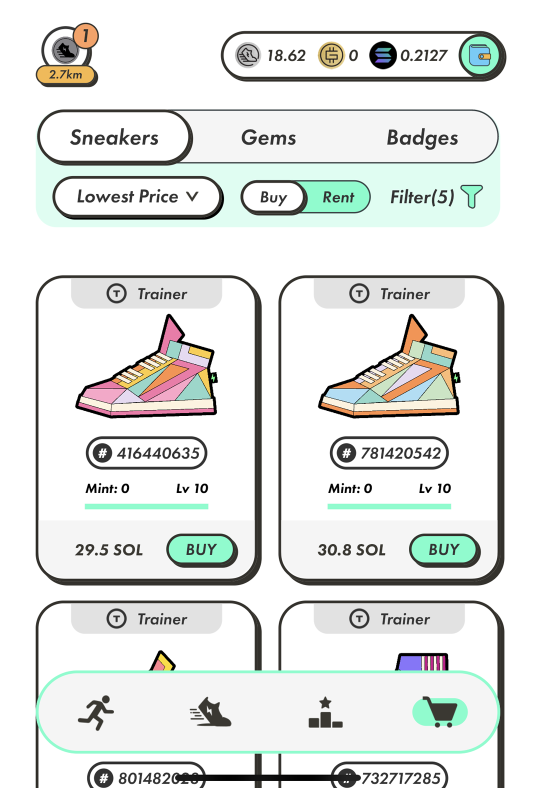 - STEPN = 운동화 NFT를 보유한 사용자가 실외에서 운동을 통해 토큰과 NFT 보상을 얻을 수 있는 대표적인 M2E 모델