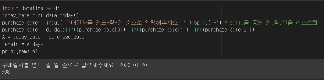 ex) A = 2020-1-18 -> A.split('-') = [2020, 1, 18]로 출력