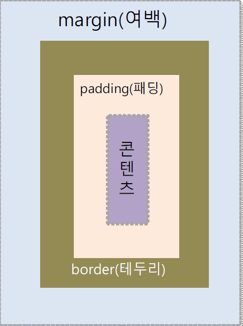 - 패딩(padding) = 콘텐츠를 직접 둘러싸고 있는 내부 여백