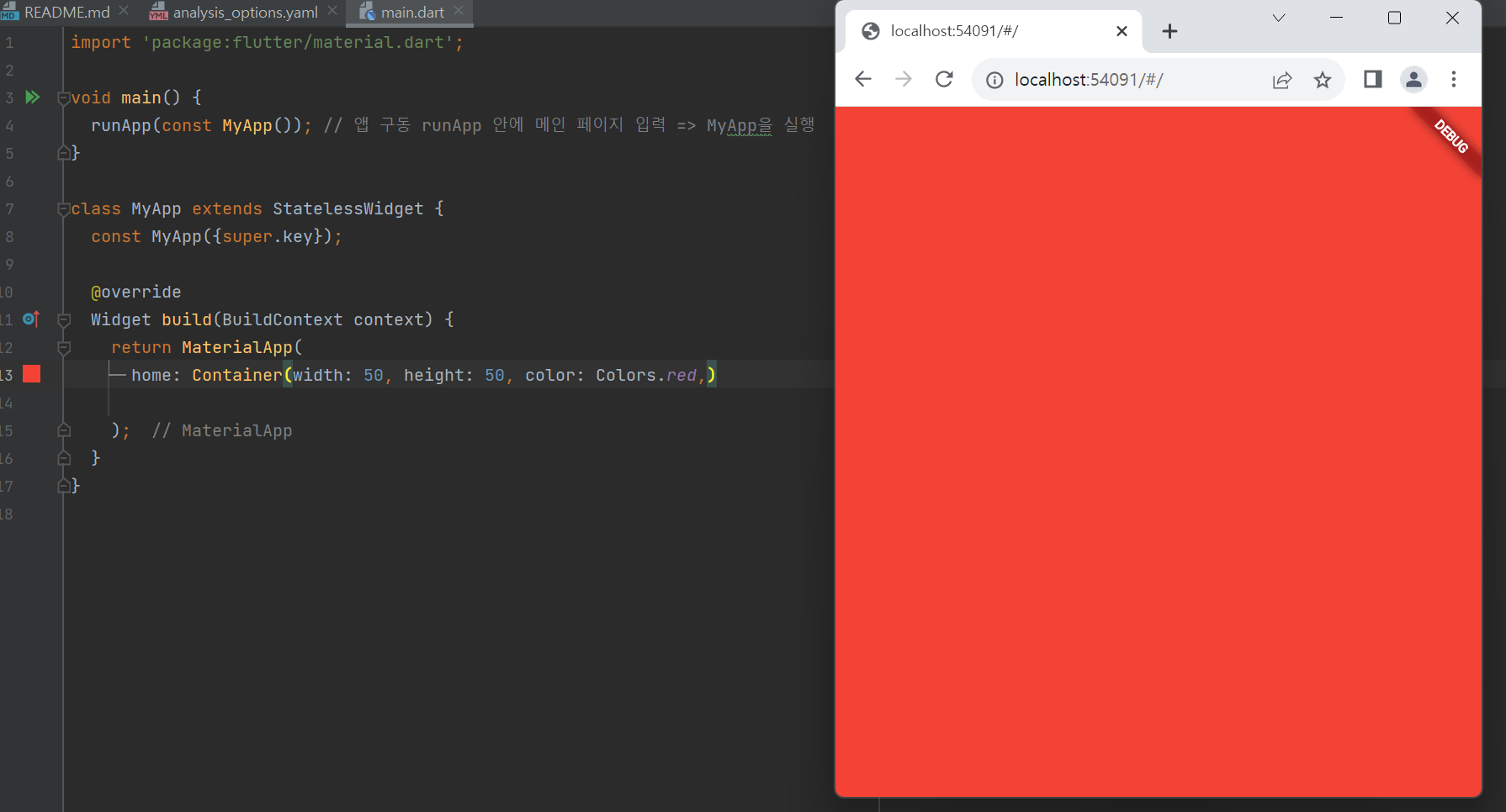 runApp(const MyApp()); // 앱 구동 runApp 안에 메인 페이지 입력 => MyApp을 실행