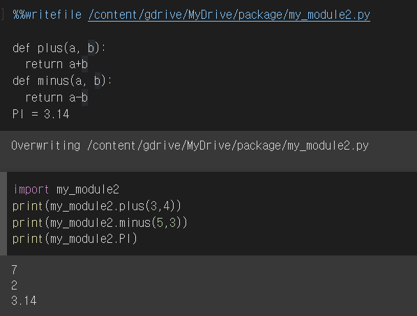 3. %%writefile /폴더 경로/파일명.py 를 통해 모듈의 내용을 작성하는 동시에 모듈 파일 저장