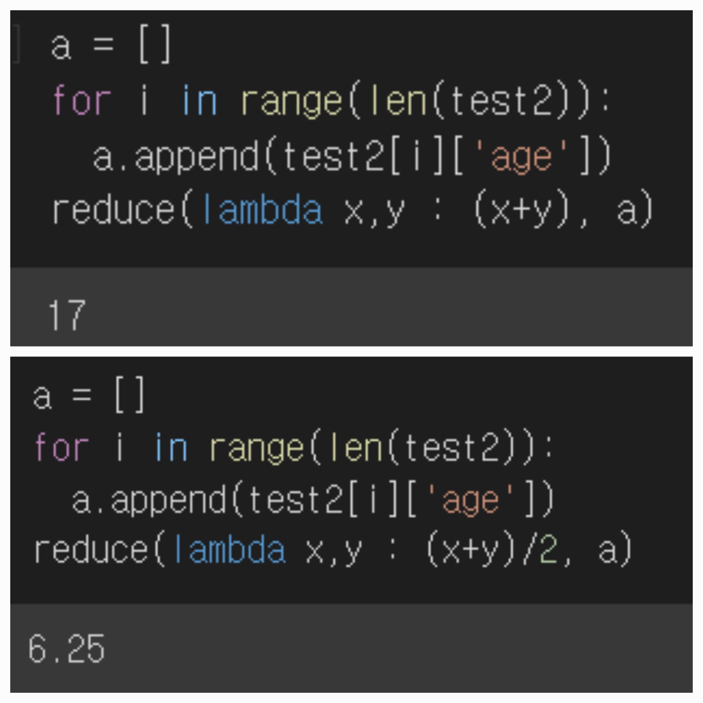 - 반복 가능한 객체의 각 요소를 지정된 함수로 처리한 뒤 이전 결과와 누적해서 반환