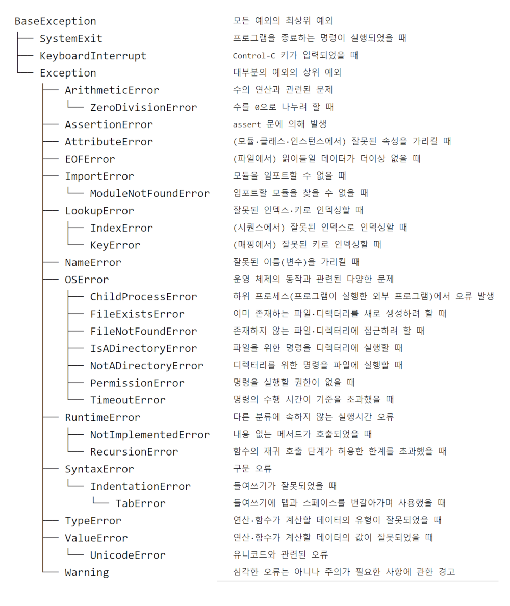 - 예외처리 입력 형태(try~except는 if~else와 비슷)