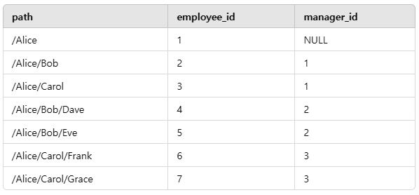 SELECT SYS_CONNECT_BY_PATH(employee_name, '/') AS path, employee_id, manager_id